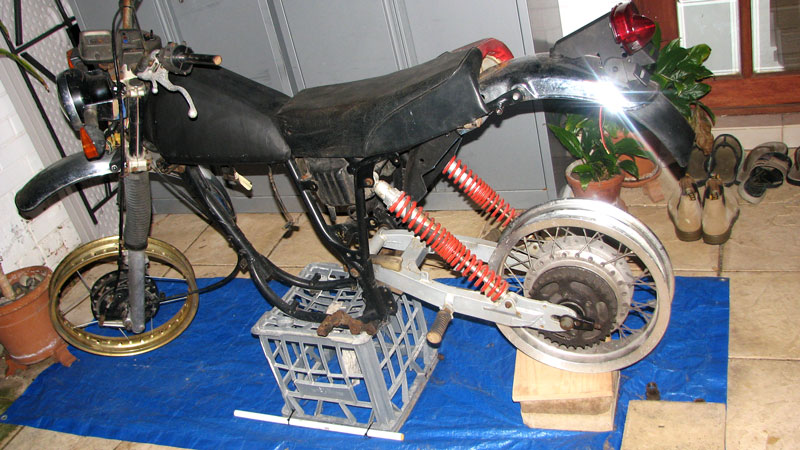 Then I quickly modelled ths brake bracket up in AutoCad 3d. Upper two holes mount to the lower fork leg, lower hole is where the brake cable goes through and the hole for mounting to the brake plate is hidden behind. Have used photoshop to emboss 'crispy one' on the only custom part so far. Part will be painted to match cylinder and the rear shock springs.
